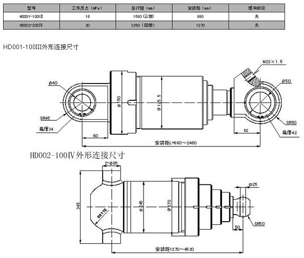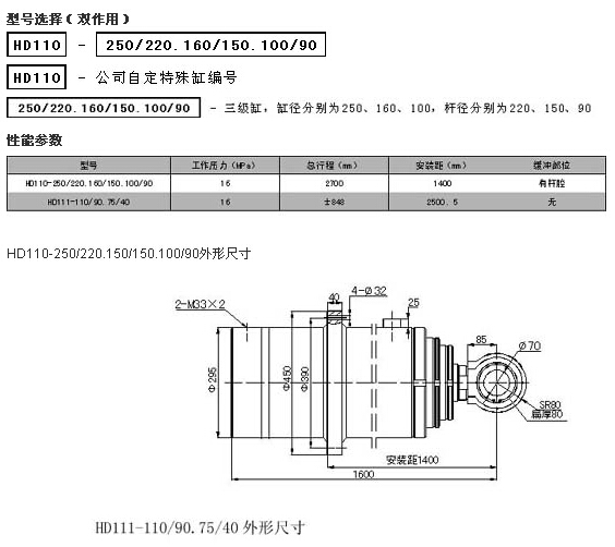 适用于行程大而安装距或总长小(行程可以大于安装距或总长)的场合,有单作用和双作用。伸缩级数可由两级至五级不等!我公司生产的HD系列液压缸布局紧凑、结构合理、工作可靠、装拆方便、易于维修,广泛用于各类工程机械、矿山机械、起重运输机械、环保机械、交通机械(清障车)等。该系列液压缸的工作压力、工作行程、安装距、使用级数、各级行程和杆径等参数可根据客户需要进行设计。